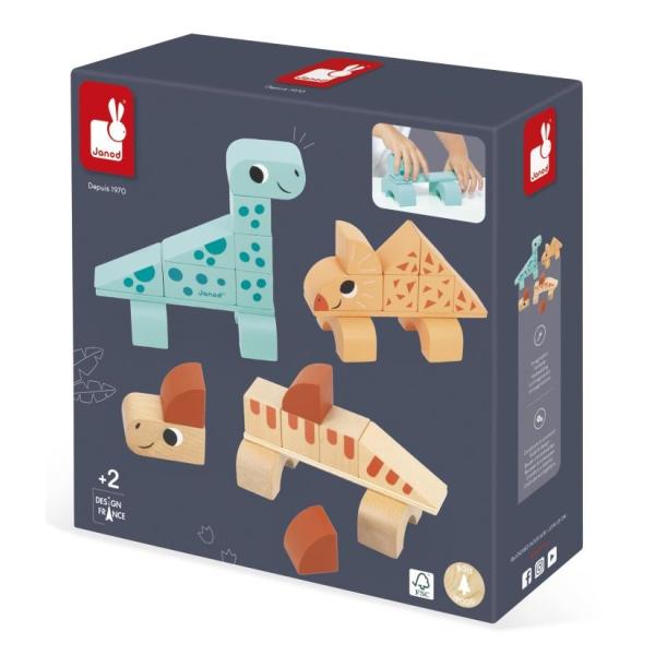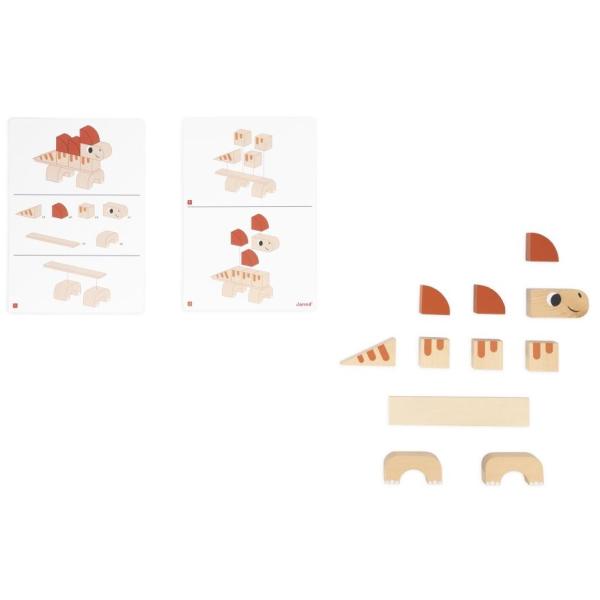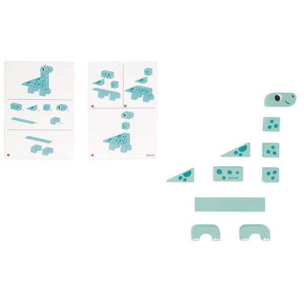 Sada se skládá ze 3 dinosaurů k sestavení: 10-dílného triceratopse, 10-dílného diplodoka, 11-dílného spinosaura a 3 karet, které provedou vaše dítě stavebním procesem.