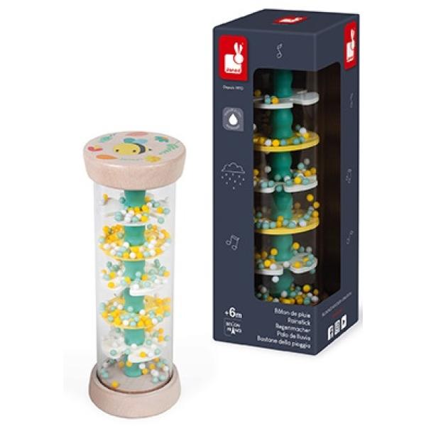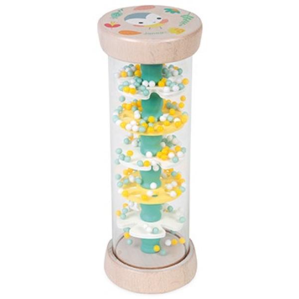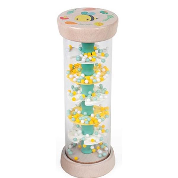 Tato roztomilá hračka pomůže představit vašemu dítěti svět hudby a stimulovat jeho zrakovou ostrost. Při otočení hračky tak, aby jemné korálky padaly dolů, si dítě samo vytváří melodický zvuk padajícího deště. Hračka je snadno uchopitelná s ergonomickým designem, který je vhodný i pro malé ruce vašeho dítěte. Použité barvy jsou na vodní bázi, zdravotně nezávadné. Rozměr produktu: 6.2 x 6.2 x 17.3 cm Materiál: dřevo, plast Vhodné pro děti: od 6 měsíců.