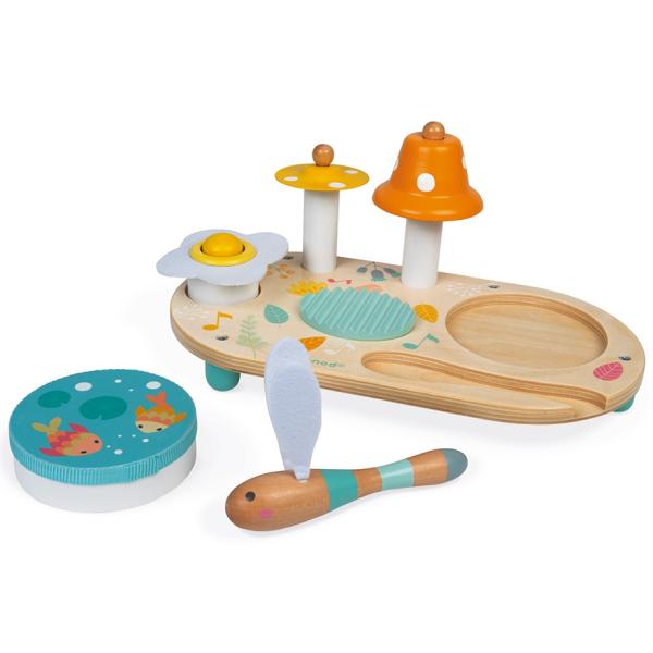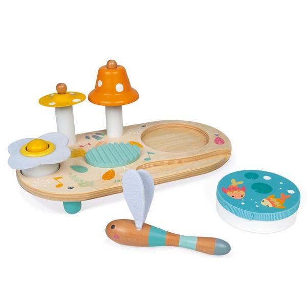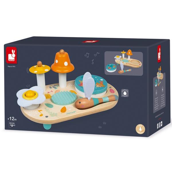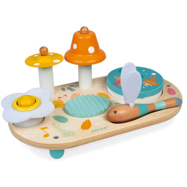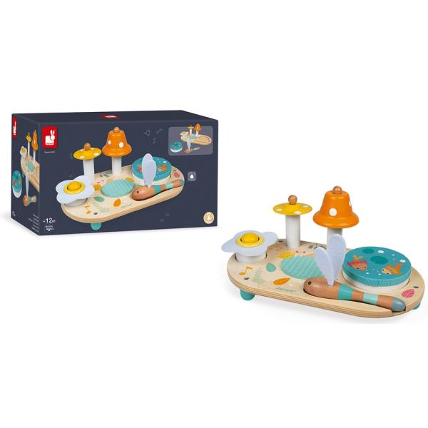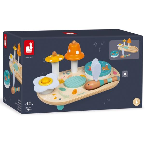 Dřevěný hudební stoleček pro děti Janod série Pure. Nádherný barevný hudební stoleček pro nejmenší hudebníky.