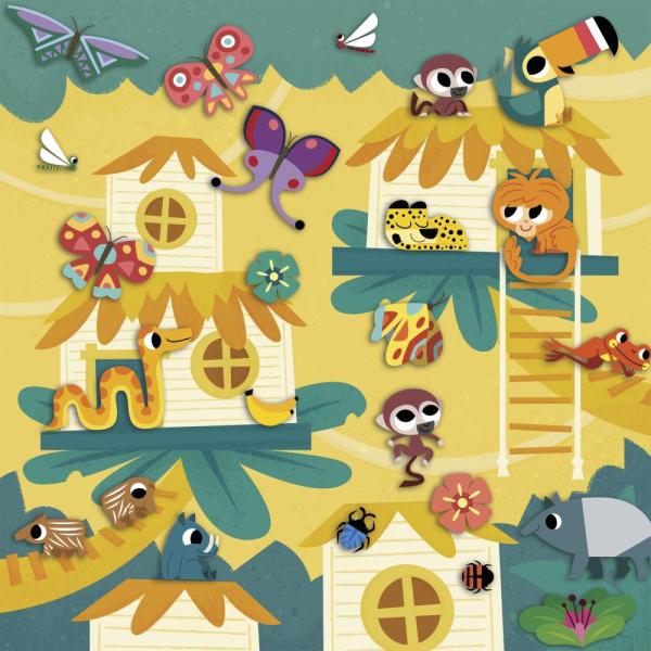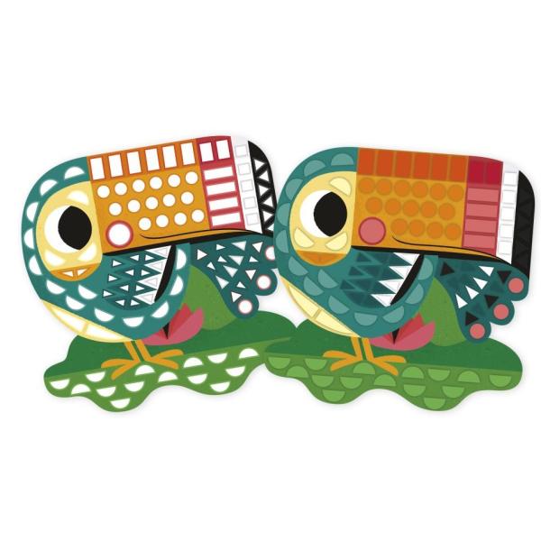 Úkolem je dotvořit obrázky barevnými nálepkami různých tvarů. Vaše dítě se bude bavit při dokončování roztomilých, barevných scén s tematikou džungle.