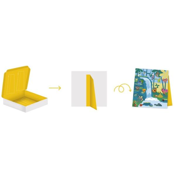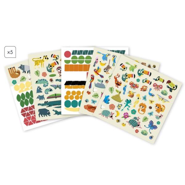 Tato ultrakompletní řemeslná sada umožní dětem ve věku 5 let a více bavit se s nálepkami a ozdobami s tematikou džungle! Pomocí barevných nálepek si nejmenší mohou vytvořit 3 dekorace a 2 obrázky, které jsou součástí této sady.