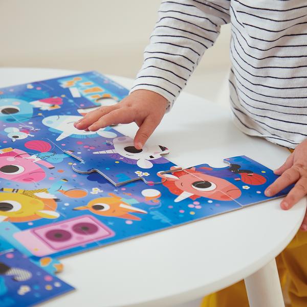 Každý kousek skládačky odhaluje o něco více z této události pod vedením tancujících jednorožců, čímž rozvíjejí jemné motorické dovednosti a představivost dětí: rock’n’rollová výzva pro malé ručičky!