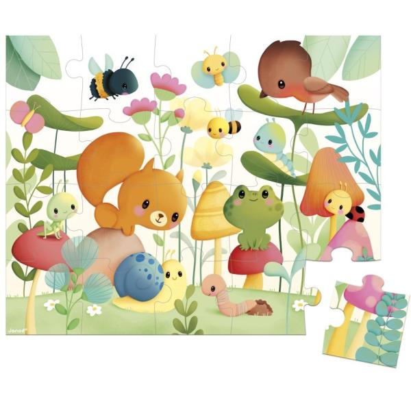 Podívejte se tam – beruška na houbě! A podívejte se sem, je tu šnek s modrou ulitou! Protože je na co se dívat, batolata budou milovat skládání těchto puzzle a poznávání malých zvířátek v zahradě.