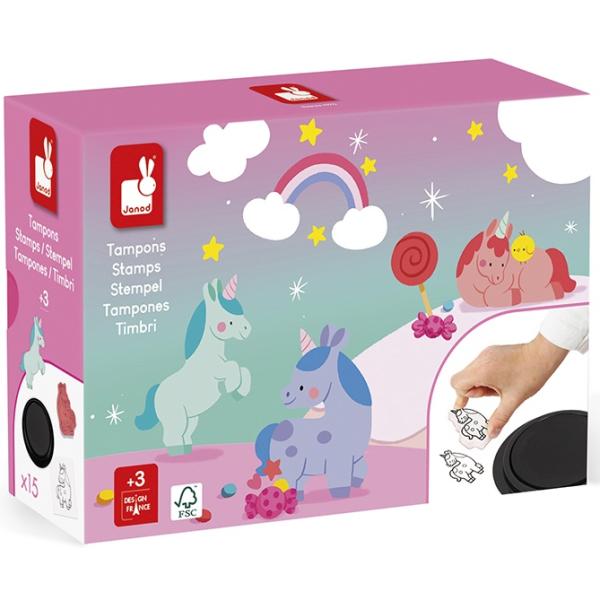 Tato skvělá sada obsahuje 15 pěnových razítek: pohádková fantastická zvířátka, sladkosti, srdíčka a duhu… vše, co bude váš drobeček potřebovat, aby mohl uniknout do pohádkového světa jednorožců.