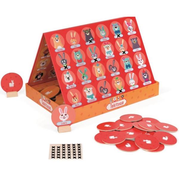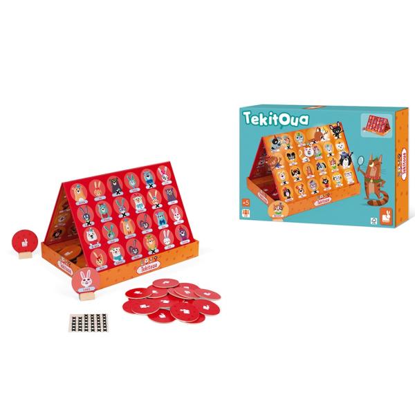 Dětská strategická Hádej kdo jsem! má motiv zvířátek, je v anglickém jazyce. Součástí balení je 48 kartiček, hrací plocha, podstavec, 48 odnímatelných nálepek. Cíl hry je vylučovací metodou uhodnout, jaké zvířátko má na kartičce protihráč. …