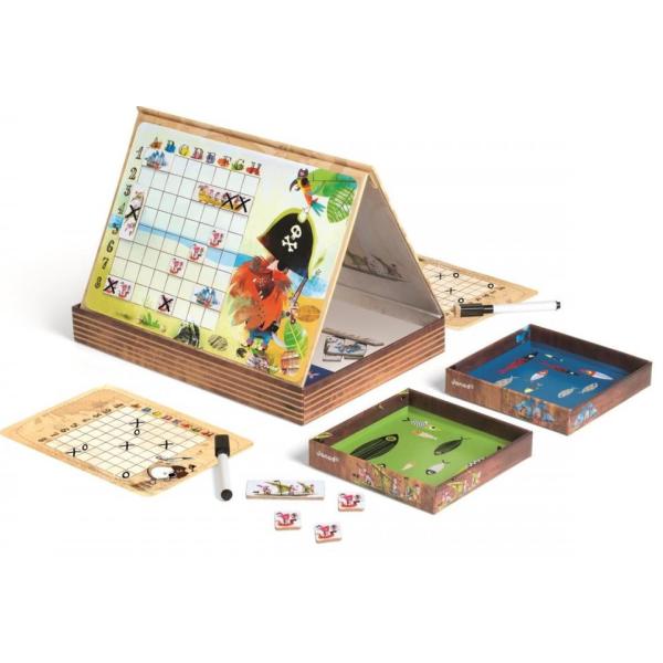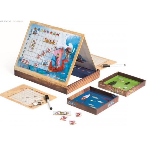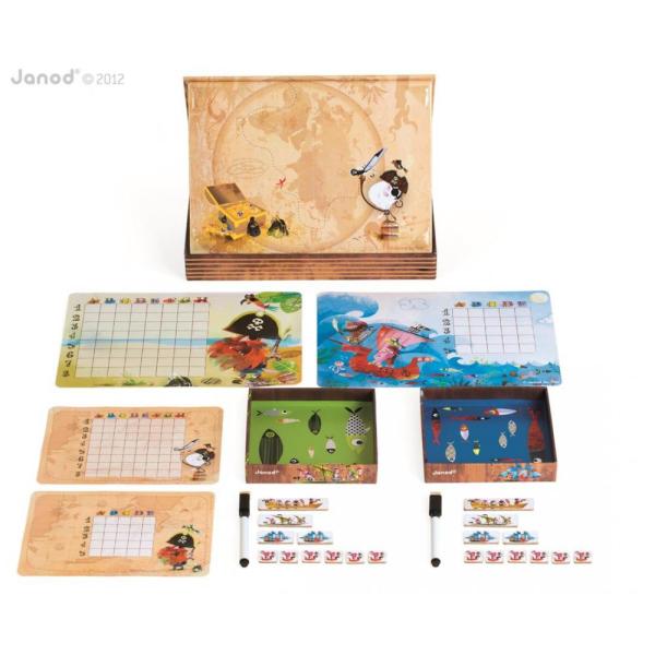 Napnout plachty…! Do boje…! Zahrajte si na piráty, a potopte lodě svého nepřítele jako první!!! Pirátské bitevní lodě je skvělá hra, která přinese chvíle plné napětí a zábavy nejen pro ty nejmenší, ale pro všechny generace! Součástí hry jsou 2 mřížky pro dvě úrovně hry, 20 lodiček (magnetických) a 2 smazatelná pera. Vhodné pro děti: od 5 let