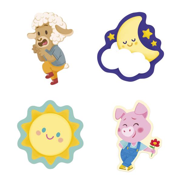 Velikost nálepek byla speciálně navržena pro ruce dětí od 3 let: měří přibližně 5 x 5 cm (max.).