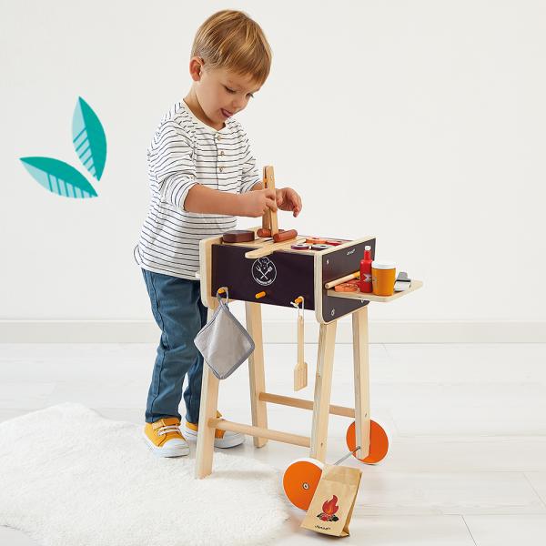 Ucítíte tu lahodnou vůni grilovaných klobás? S touto nádhernou dřevěnou hračkou na grilování bude jídlo určitě slavnostní, což je velmi realistické! Děti, oblečte si zástěry, vy jste šéfkuchaři! Grilovací večery, nezapomenutelné události léta, se nyní budou moci konat po celý rok pod vedením našich malých kuchařů, kteří s radostí zastanou při vaření svých rodičů. S touto mobilní grilovačkou na nohou se děti od 3 let mohou bavit při vaření pro své kamarády.