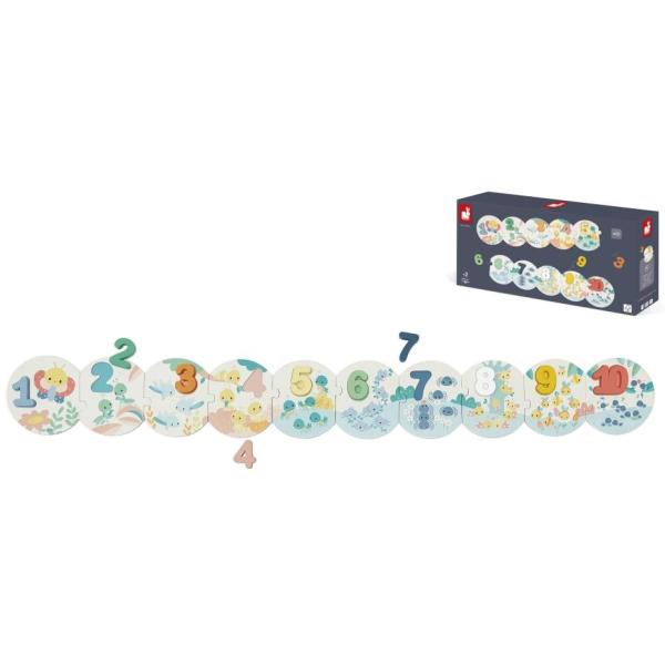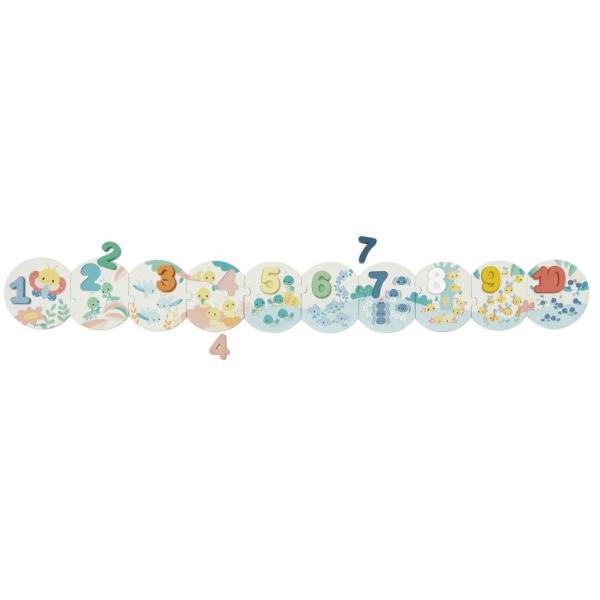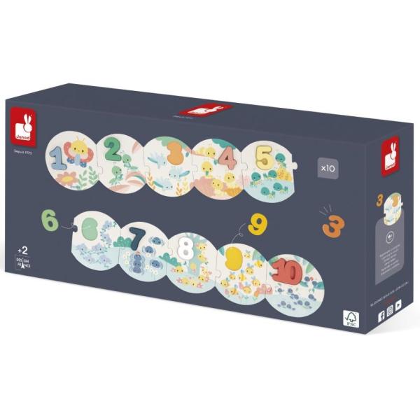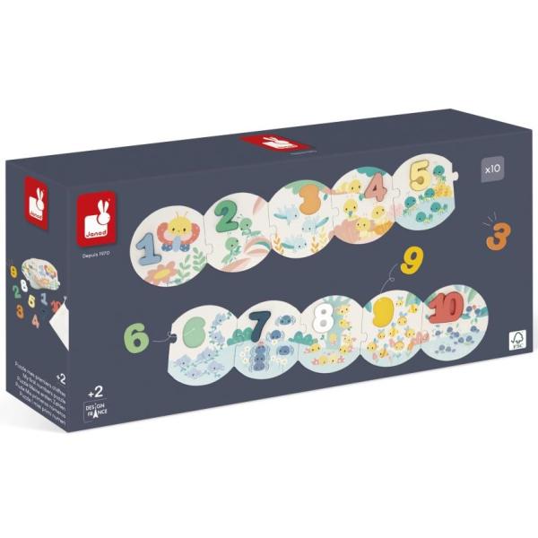 Každý kousek puzzle odpovídá dřevěnému číslu.