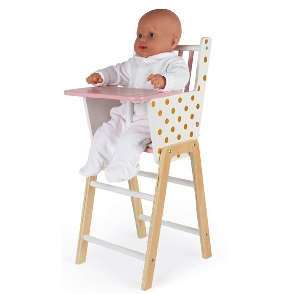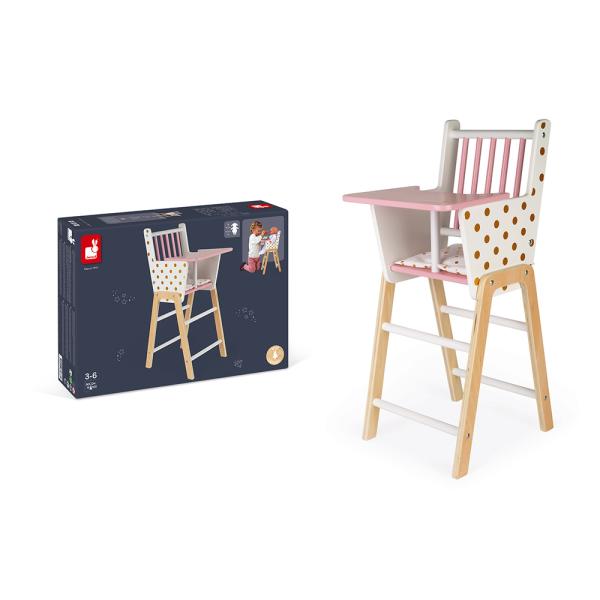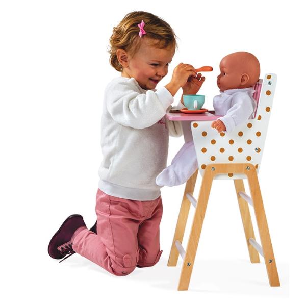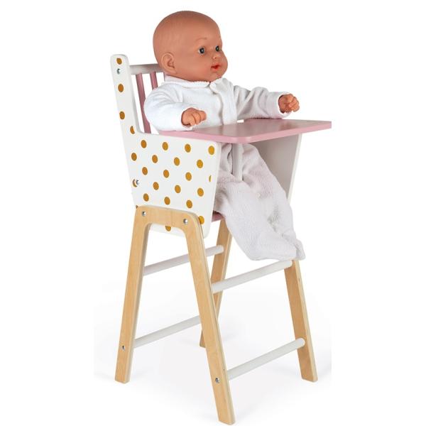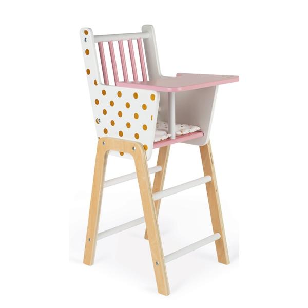 Dřevěná židle pro panenku Janod série Candy Chic. Dřevěná židle k jídlu pro panenky s okouzlujícími tečkovaným motivem splní sny každé holčičky. Malé maminky se naučí procesu stravování při hraní si s panenkami podle vlastní fantazie. …