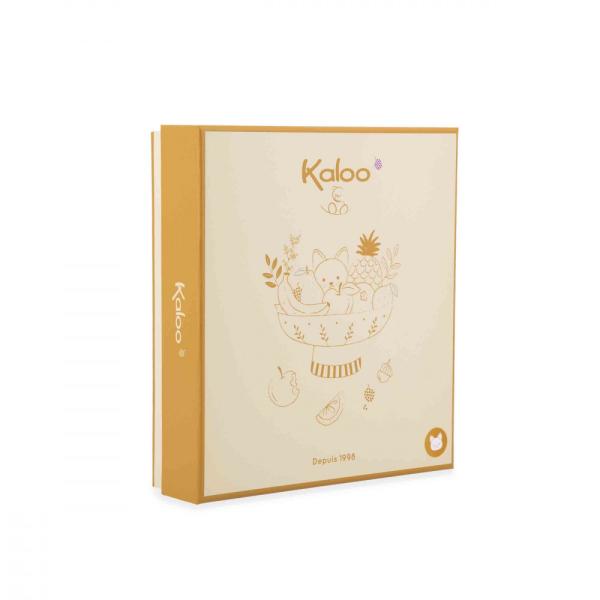 Značka Kaloo myslí i na životní prostředí – tento produkt je vyroben s použitím minimálně 77 % recyklovaných materiálů, přičemž výplň tvoří 100 % recyklovaný polyester. Hračka je zabalená v elegantní dárkové krabičce, kterou si můžete přizpůsobit osobním věnováním pod víkem. Krabička je opakovaně použitelná a skvěle poslouží na uschování prvních drobností vašeho miminka.