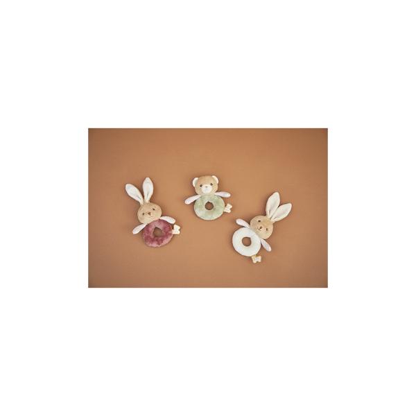 Díky svým dlouhým uším a lehkému, měkkému tělíčku je králíček ideální pro nácvik úchopu malými dětskými ručičkami. Uvnitř hračky je bezpečně uloženo chrastítko, které při pohybu vydává jemný zvuk, čímž stimuluje sluchové vnímání a zvědavost miminka. Povrch z vysoce kvalitního mikro-veluru je mimořádně hebký k citlivé dětské pokožce, což z něj dělá perfektního společníka na mazlení v postýlce i v kočárku.