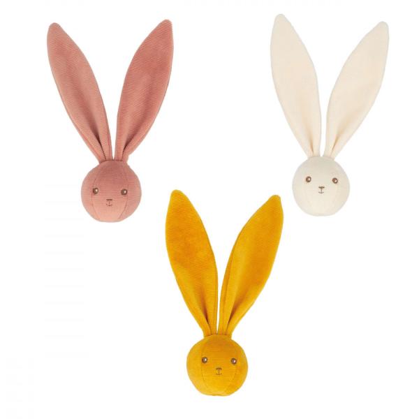 Objevte okrovou chrastítko zajíce z kolekce Lapinoo od Kaloo, nezbytný a roztomilý dárek pro pobavení miminka.
