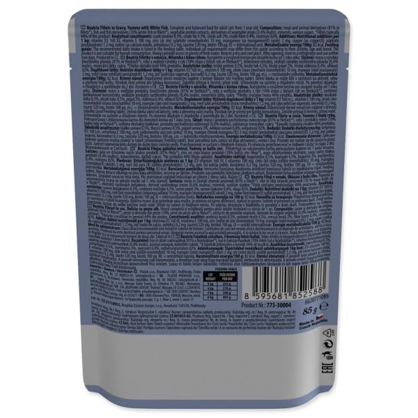 Kompletní krmivo pro dospělé kočky od 1 roku – lahodné kousky bílé ryby v jemné omáčce potěší i vybíravé kočky. Díky šetrnému složení je vhodné na každodenní krmení a podporuje optimální kondici a vitalitu.