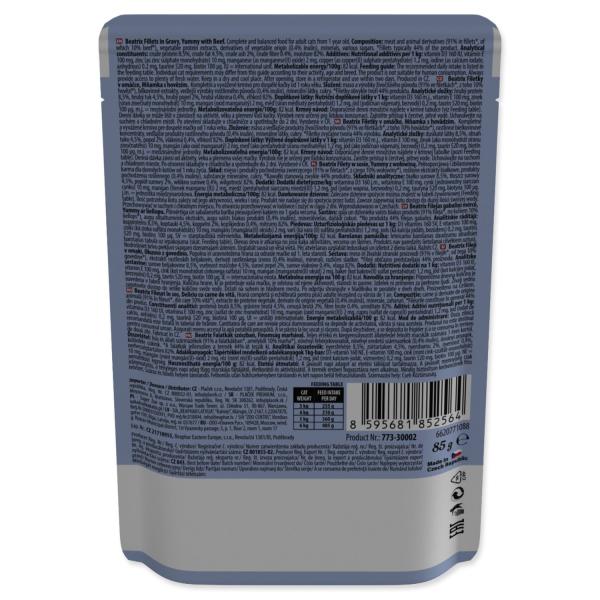 Kompletní a vyvážené mokré krmivo pro dospělé kočky od 1 roku – šťavnaté filetky s hovězím masem v lahodné omáčce jsou skvělou volbou pro náročné kočičí jazýčky. Díky jemné struktuře a vysoké chutnosti uspokojí i vybíravé kočky.