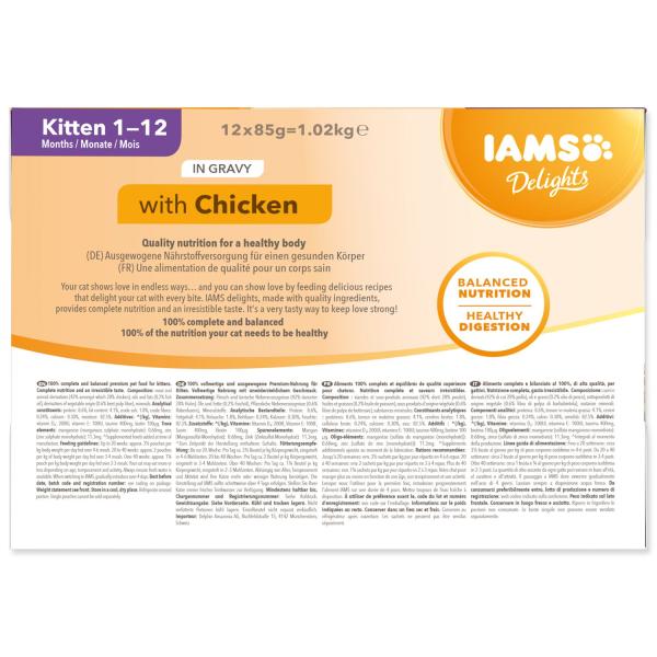 Kapsičky IAMS KITTEN – multipack v omáčce 1020g (12x85gr) pro vaše koťata. Krmný návod a složení v balení.