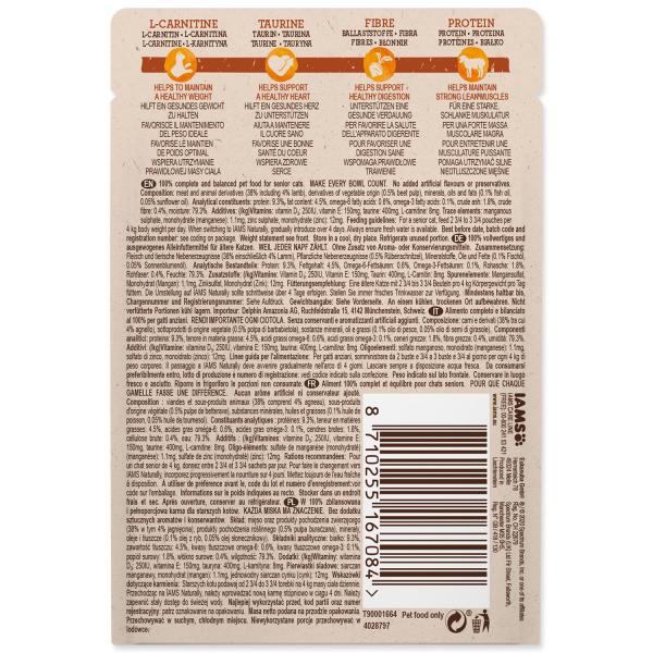 Kapsička IAMS Naturally Senior s jehněčím v omáčce je ideální krmivo pro kočičí seniory. Obsahuje přírodní suroviny pro zdravé trávení, krásnou srst a silnou imunitu.