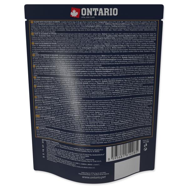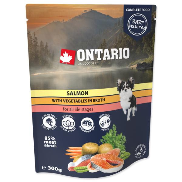 Kapsička Ontario losos se zeleninou ve vývaru je kompletní monoproteinové krmivo pro psy, které obsahuje jemně mleté maso a kvalitní přírodní ingredience. Díky voňavému vývaru a čistému složení potěší vašeho čtyřnohého miláčka a podpoří jeho zdraví.