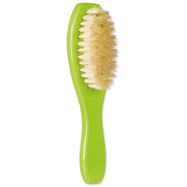 Dřevěný kartáč s přírodními štětinami. Velikost: 5 x 18 cm.