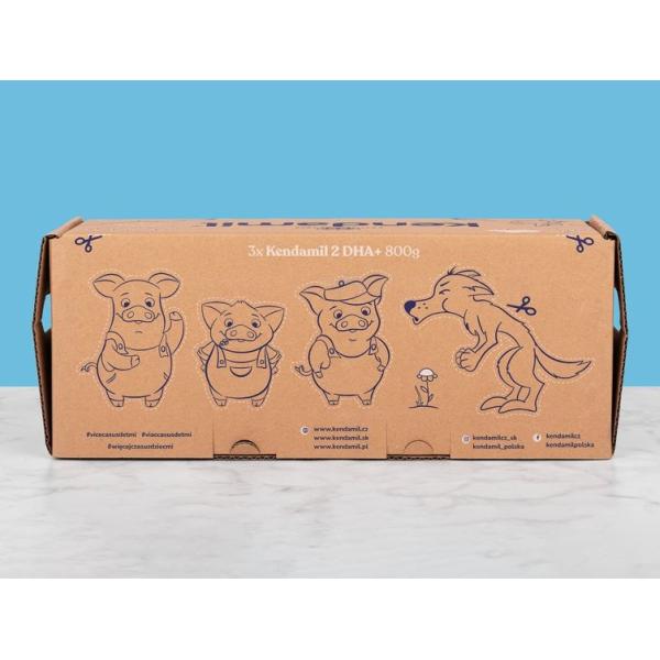 Původní cena byla: 79 Kč.66 KčAktuální cena je: 66 Kč.Kendamil Premium 2 HMO+ (3× 800 g), pohádkové balení s divadlem O třech prasátkách