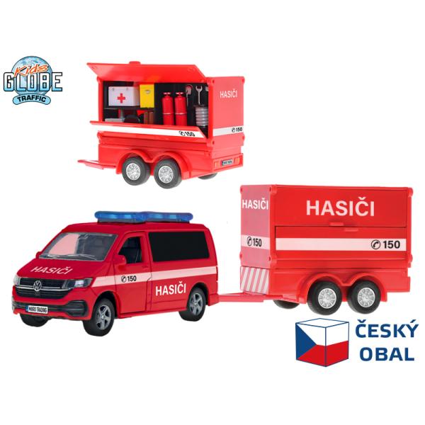 Hasičský dodávka VW na zpětný chod s přívěsem v CZ designu v licenci Kids Globe.