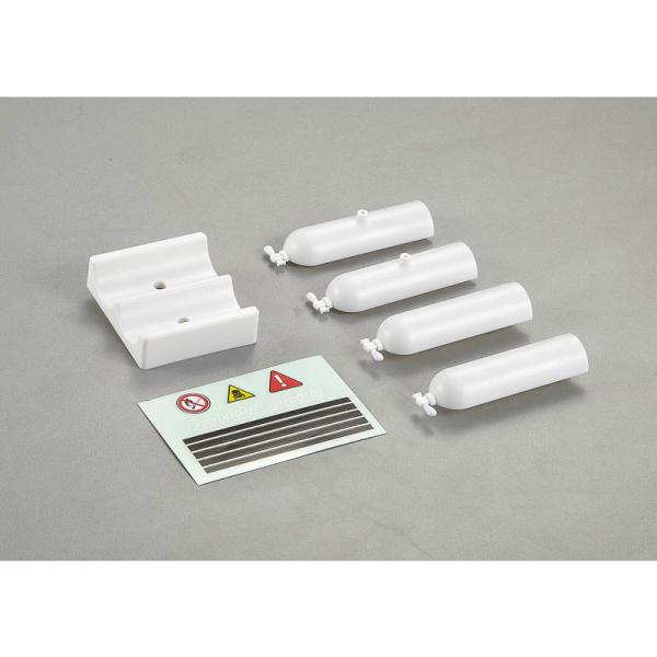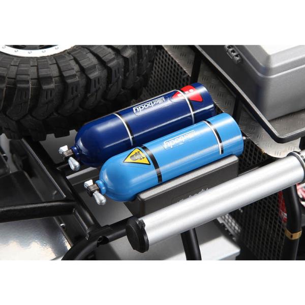 Lahve jsou vyrobený z ABS materiálu v bílém provedení. Ke karoserii pomocí montážní sady připevníte držák na láhve, do kterého vložíte tlakové láhve ( nutno je sestavit ), polepit samolepkami a můžete se bez obav vydat na cestu.Obsah balenia:Obsahem balení jsou 2 x tlakové láhve ( nutno sestavit ), držák na láhve, arch samolepek, obrázková návod, montážní příslušenství.