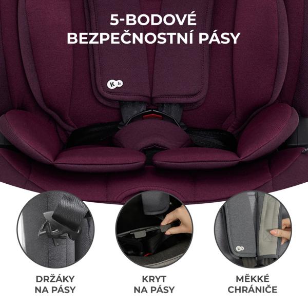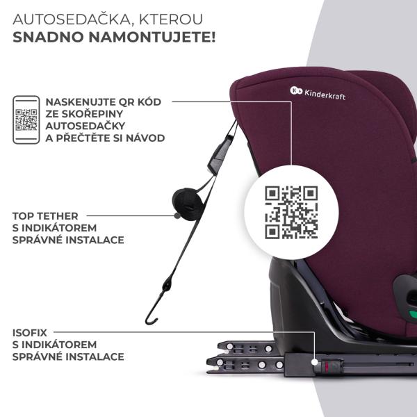 Sedačka má systém ISOFIX a popruh TOP TETHER, který zaručuje její jednoduchou a správnou montáž v autě.