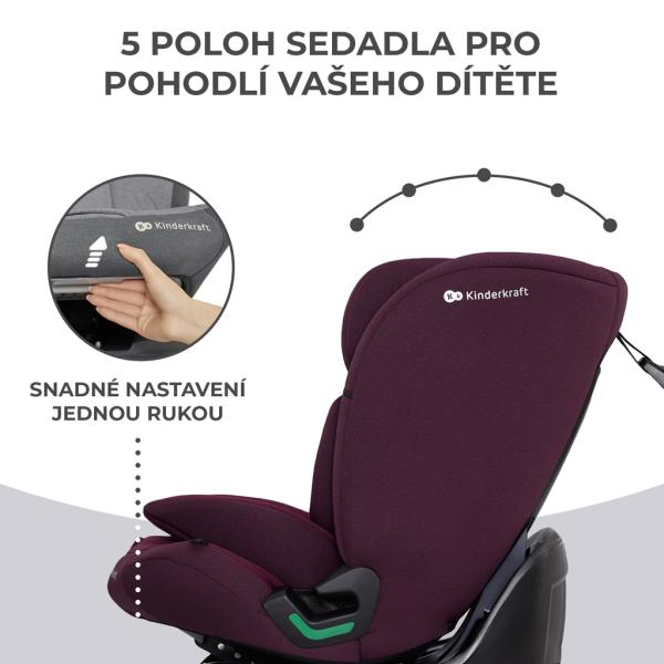 Funkce RECLININGAutosedačka je integrována s podnoží a umožňuje vám nastavit úhel sklonu vzhledem k pohovce, což zvládnete udělat jednou rukou a to během celé doby jejího používání. Autosedačku si jednoduše nastavíte do jedné z 5 poloh. To ovlivňuje nejen pohodlí při cestování, ale i bezpečnost dítěte.