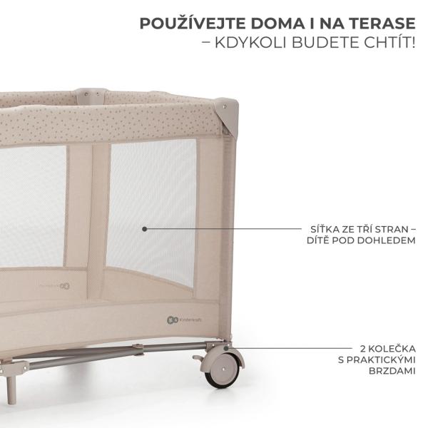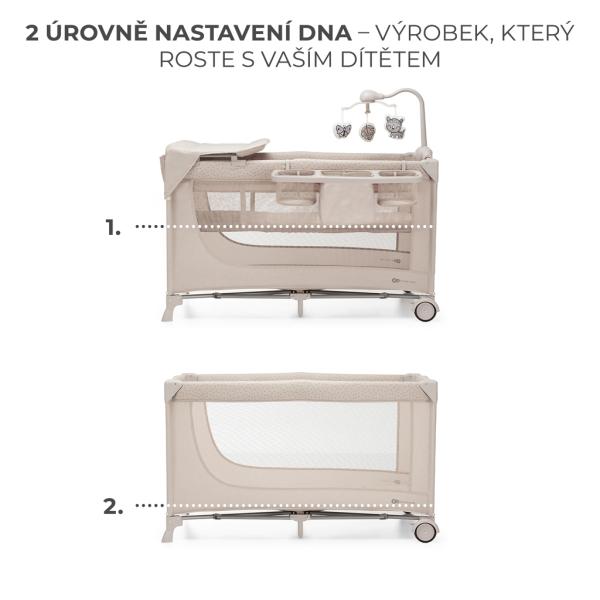 Sieťované strany: Tri strany postieľky sú vyrobené zo sieťoviny, ktorá zabezpečuje správnu cirkuláciu vzduchu a umožňuje sledovanie dieťaťa.