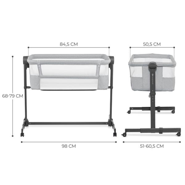 Nastavte ji na jednu z 5 úrovní, nastavte nohy v takové vzdálenosti, aby postýlka přesně přiléhala k posteli, a připevněte ji pomocí speciálních popruhů, abyste vytvořili bezpečný prostor na spaní pro vaše dítě. Poskytnete prostor sobě a zajistíte hygienu spánku, ale zároveň budete mít své dítě na dosah ruky.