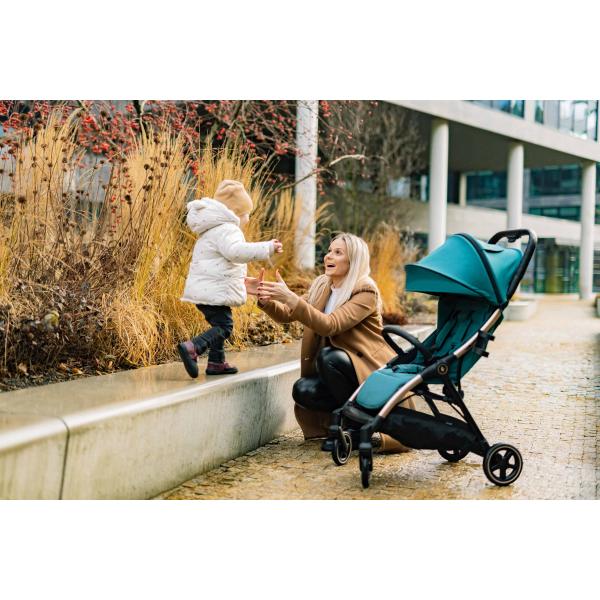 Bezpečně i pohodlně na každou trasuMěkké sportovní sezení je vybaveno 5-bodovým bezpečnostním pásem s magnetickou sponou. Prošívanou hrazdu kočárku je možné odklopit pro snadnější usazení dítěte. Prodloužitelná stříška s ventilačními okénky chrání dítě před sluncem i větrem. Součástí je košík, který unese až 3 kg věcí, které je dobré mít na cestách po ruce.