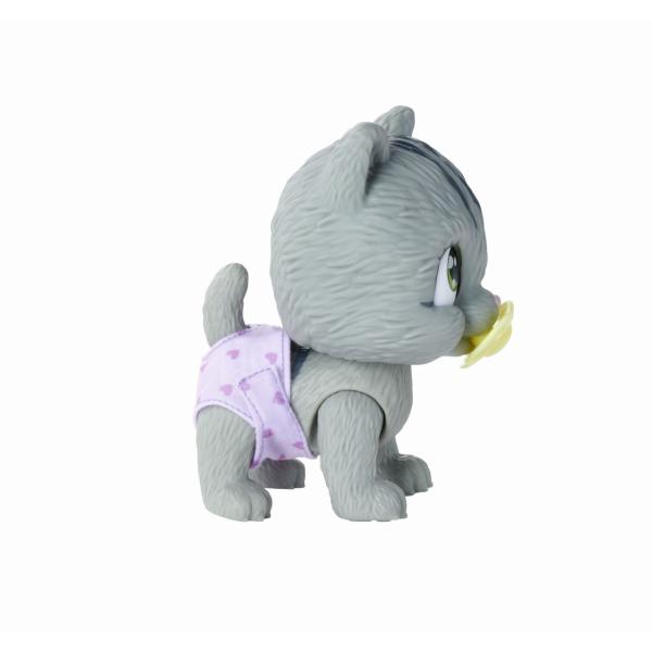 Kotě je milé zvířátko, které hledá svého opatrovníka, který si ho adoptuje, dá mu jméno a obklopí ho láskou. Mohou pít skutečnou balenou vodu a čůrat do plenky, která po namočení mění barvu. Jeho kouzelná tlapka prozradí, jestli je to kluk nebo holka. Roztomilé kočičí miminko s funkcí pití a čurání, plenka s funkcí změny zbarvení po namočení, magická tlapka (po navlhčení se vybarví a ukáže pohlaví koťátka), adopční list a tři překvapení. Velikost 15 cm. Pro děti od 3 let