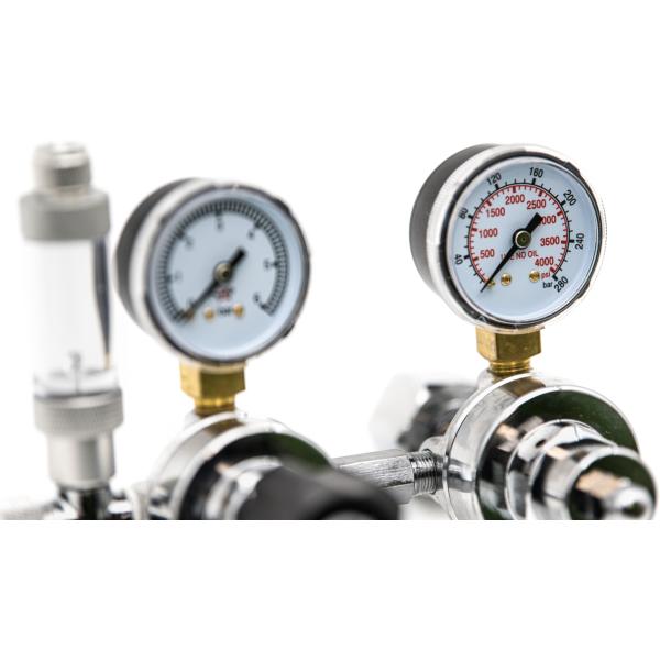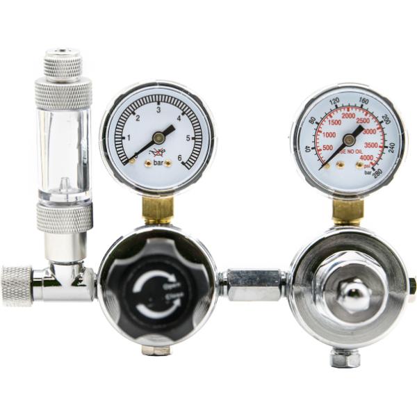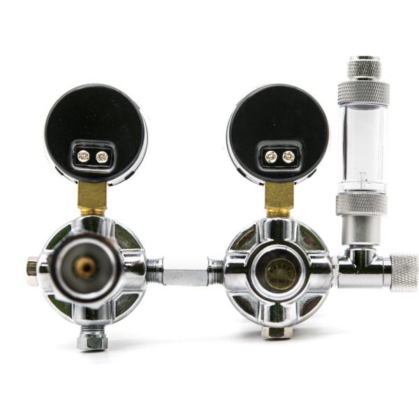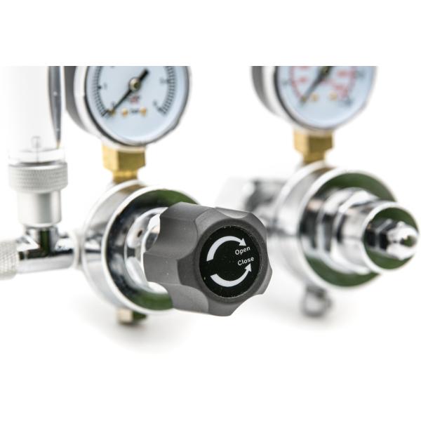 Redukční ventil – Hlavní dvojstupňový redukční ventil s dvěma manometry. Připojuje se k flaskě CO2 a dodává se ve verzi W21.8.