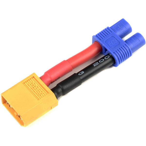 Konverzní kabel s konektory EC3 baterie (samice) – XT-60 přístroj (samec), kabel 12AWG.