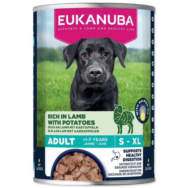 Konzerva EUKANUBA Adult s jehněčím a bramborami je ideálním zdrojem výživy pro vašeho psa. Obsahuje kvalitní bílkoviny, omega-3 mastné kyseliny a prebiotika pro zdravou střevní mikroflóru.