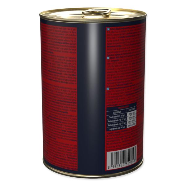 Základem receptury je 97 % masa a vývaru, což zaručuje maximální nálož živočišných složek pro neodolatelnou chuť a přirozenou výživu. Hovězí maso slouží jako poctivý zdroj bílkovin a železa, které jsou nezbytné pro silné svaly a dostatek energie na každé procházce. Paštika je obohacena o spirulinu – superpotravinu plnou minerálů, která posiluje obranyschopnost a pomáhá detoxikovat organismus.