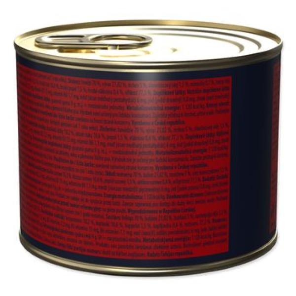Tato paštika s obsahem 91 % masa a vývaru kombinuje silné hovězí maso s mrkví, která je důležitá pro dodání energie a podporu zraku. Díky monoproteinové receptuře je tento produkt vhodný i pro psí alergiky a zajišťuje bezproblémové trávení bez zbytečné zátěže.