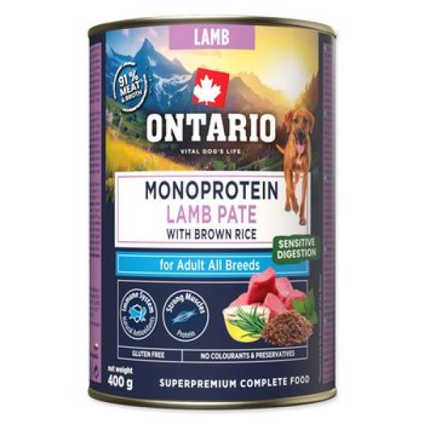 Konzerva Ontario Adult monoprotein jehněčí paté s hnědou rýží 400g