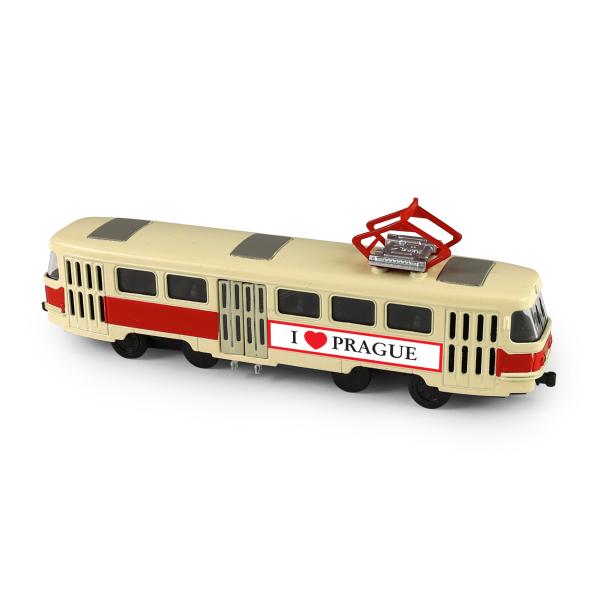 Originální kovová retro tramvaj T3 v měřítku 1:87, která jezdí na zpětný chod.