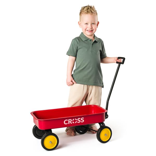 Dětský ruční vozík je praktická a oblíbená herní pomůcka určená k tahání. Slouží k přepravě hraček, písku nebo jiných lehkých předmětů. Je vyroben z odolného kovu, aby vydržel každodenní používání v interiéru i exteriéru. Má čtyři stabilní kolečka, která zajišťují dobrou rovnováhu a jednoduché ovládání, a dlouhou rukojeť přizpůsobenou dětské výšce, díky čemuž si ho dítě dokáže samo pohodlně táhnout. Vaníčka červeného vozíku je dostatečně prostorná a hluboká, takže poskytuje dostatek místa na převoz různých předmětů. Má zaoblené hrany pro vyšší bezpečnost. Celková konstrukce je navržena tak, aby byla lehká, ale zároveň pevná. Tento typ vozíku podporuje pohyb, koordinaci a samostatnost dítěte a zároveň rozvíjí jeho fantazii při hře doma, na dvorku či v zahradě.