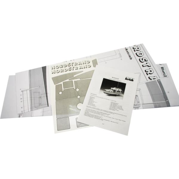 Set obsahuje kompletní sadu výkresové dokumentace modelu v měřítku 1:1. Na výkrese je montážní sestava, jejich kompletace a to včetně schématu instalace RC zařízení. Vícejazyčný postup stavby rámcově upravuje logické sestavení jednotlivých komponentů.Obsah balenia:Obsahem balení jsou nenabarvené plastové výlisky, laserem vyřezané dřevěné a plastové díly, potřebný stavební materiál – mosazné trubičky, tyčky, táhla, hřídele, lodní šroub, …). Manuál v angličtině a němčině, stavební výkresy 1:1. Stojánek není v balení.Odporúčame dokúpiť:Pro sestavení modelu motorové jachty Nordstrand potřebujete: