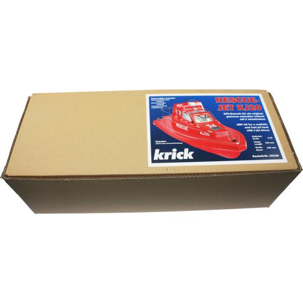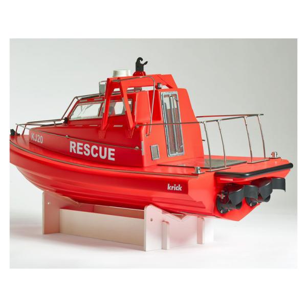 Charakteristika:Stavebnice Krick Záchranný člun KJ20 kit je model rychlého proudového člunu, který se používá pro záchranné a policejní složky. Vysoká rychlost, skvělá manévrovatelnost a schopnost plavit se ve velmi mělkých vodách jsou výjimečné. Model má laminátové díly trupu, paluby a nástaveb. Měřítko 1:15.