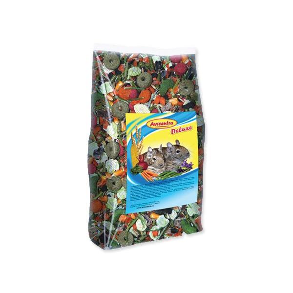 Výběrové kompletní krmivo pro osmáky. Výběrové krmivo s množstvím zeleniny, s vysokým podílem vlákniny a nízkým obsahem cukrů a tuků vhodné pro osmáky. Krmný návod: Podávejte denně přiměřené množství. Složení: vojtěška, pšenice, extrudované obiloviny, kukuřičné vločky, mrkev, ječmen, rohovník obecný, kukuřice, hrachové vločky, červená řepa, petržel. Jakostní znaky: vlhkost 11%.