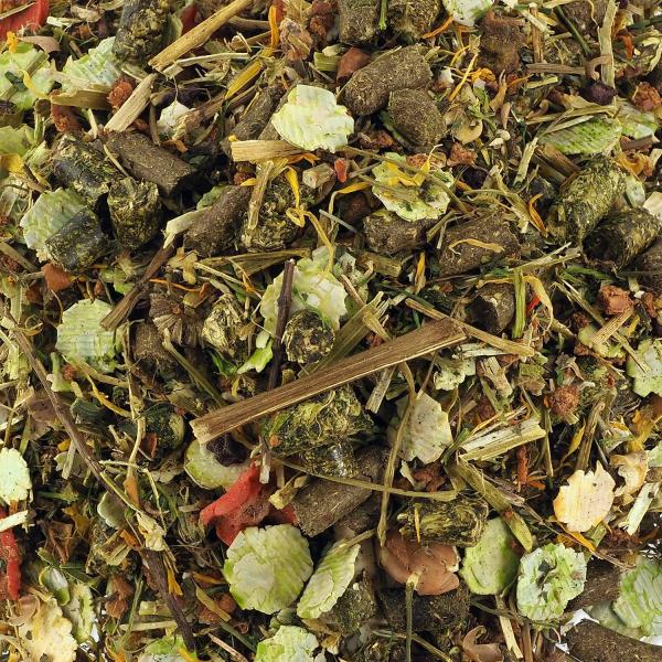 Kompletní krmivo bez obilovin, barviv a konzervantů , které je vyvinuto speciálně pro výžovové potřeby morčat. Obsahuje vysoký podíl vitamínu C , který je pro morčata nezbytný. Vysoce kvalitní seno z podhůří alp ve spojení se speciálními bylinami a prebiotiky podporuje správnou funkci zažívání. Vyvážené složení tohoto krmiva dodá vašemu morčeti všechny živiny a minerální látky pro udržení správné funkce organismu. Chutnost krmiva je podpořena přídavkem sušených květin alpských bylin. Složení: sušená vegetace rostoucí na trvalých pastvinách podhůří Alp, hrachové vločky 11,4 %, zelenina (sušená mrkev, sušená petržel 2,1 %, sušený pastinák, sušená červená řepa), byliny (sušené květy měsíčku lékařského 2 %, sušená máta peprná 1,1%, sušená meduňka, sušené pampelišky, sušený heřmánek), sušená jablka 4%, vločky z bobu obyčejného 3,3%, sušená vojtěška, lněná semena, semena černé asce, semena fenik.