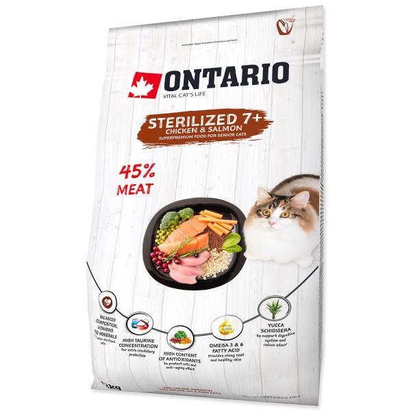 Krmivo Ontario Cat Sterilised 7+2kg – superprémiové krmivo pro dospělé kočky s nízkým obsahem obilovin. Usnadňuje stravování starší kočky a podporuje její zdravý vývoj.