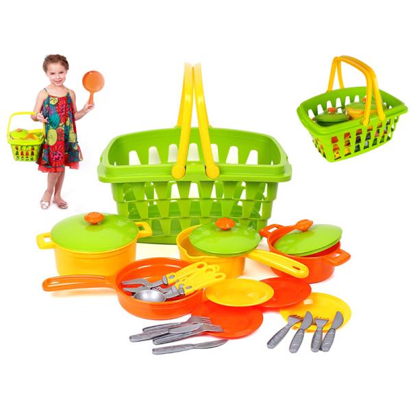 Kuchyňský set s košíkem a 23 kusy nádobí povzbudí malé kuchaře k fantazijnímu vaření. Hračky rozvíjejí jemnou motoriku a kreativitu dětí.