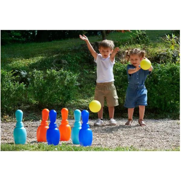 Hoď strike s touto super zábavnou sadou kuželek! Kuželky mají výšku až 30 centimetrů a jsou v krásných, jasných barvách. Sada obsahuje dvě míčky, díky čemuž můžeš házet dvakrát za jedno kolo.