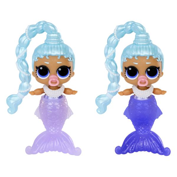 Udělej ze své L.O.L. sestřičky mořskou pannu! V balení najdeš ocasní ploutev, která mění barvu v ledové vodě. Ploutev stačí sestřičce nasadit. Panenku s ploutví můžeš vystavit v obalu. Obsah balení:
