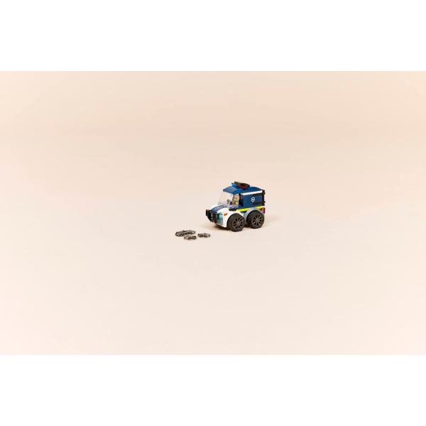ROZMĚRY – Hračkářské policejní vozidlo ve stavebnici LEGO® City ze 71 dílků měří přes 6 cm na výšku, 8 cm na délku a 5 cm do šířky