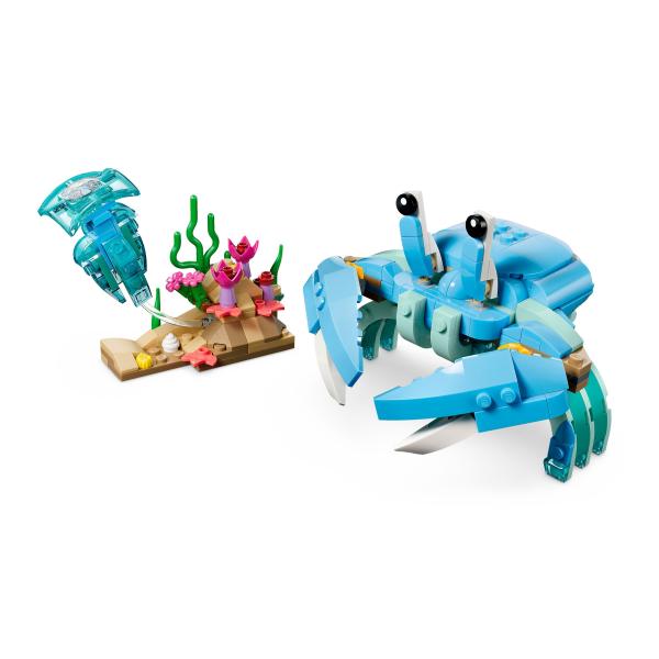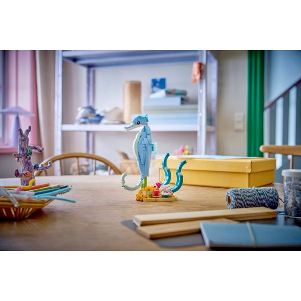 Se stavebnicí LEGO® Creator 3 v 1 Mořské živočichy: Krásní delfíni (31385) si mohou děti od 9 let hrát na zábavné příběhy. Stavebnice s figurkami mořských živočichů pro dívky a chlapce nabízí z jednoho balení kostek až 3 různé stavební možnosti. Děti si mohou postavit dynamický model, který zachycuje, jak se delfín s mládětem s polohovatelnými prvky vozí na vrcholu vlny nad korály. Následně se dá přestavět na polohovatelného mořského koníka na barevném podstavci s mořskými řasami a polohovatelnou lasturou, nebo na kraba, který cupitá vedle podmořských rostlin a medúzy. Když se do sytosti vyhrají, jednotlivé krásné modely si mohou hrdě vystavit na poličce nebo stole jako působivou přírodní dekoraci. Stavebnice LEGO Creator 3 v 1 podnítí dětskou tvořivost a skvěle se hodí jako dárek pro děti, které milují mořské živočichy. Pomocí aplikace LEGO Builder mohou stavět každý model s jistotou – stavebnici v ní dokáží přibližovat, otáčet v 3D prostředí a sledovat svůj pokrok v rámci přehledného digitálního návodu. Upozorňujeme, že modely není možné sestavit současně. Stavebnice obsahuje 542 dílků.